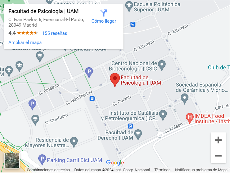 The event is taking place at the Faculty of Psychology of the Universidad Autónoma de Madrid (UAM).