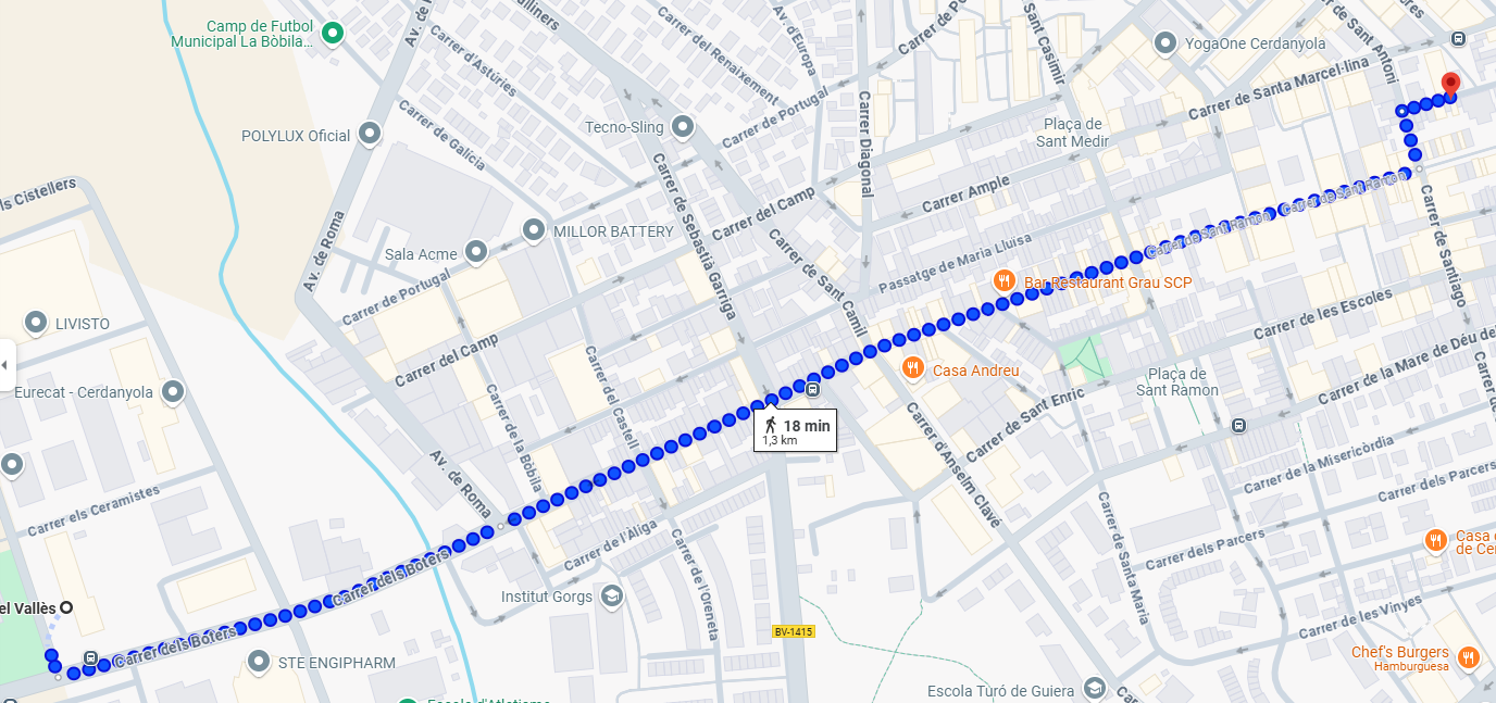 If you are staying somewhere else, (out of Cerdanyola) we'd recommend to get a taxi.