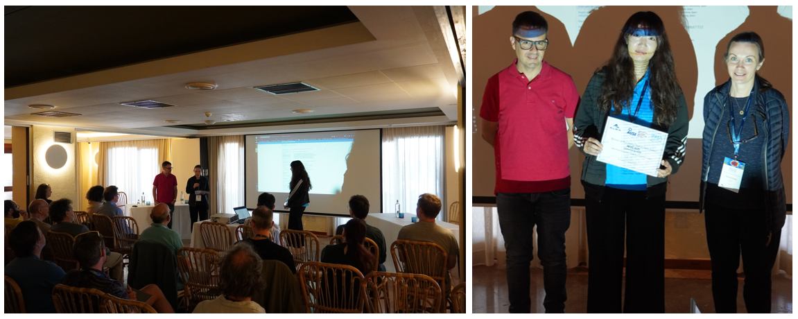 Photos. Dr. Sonia Francoual and Dr. Javier Herrero, announce and give the Best Poster Award to Hyein Jung on behalf of the Local Organizing and International Committees.